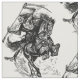 un corsaire à la couche grise tenant un scythe et assis à cheval. Coureur noir de la mort. Cheval dans le gallop . Illustration
