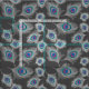 Dessin vectoriel de plumes de paons, rehaussé et rendu dans un effet de crayon de conte doux - gris argenté/gris, avec oeil gris, turquoise et rose fuschsia, sur un tissu arrière - plan gris graphite profond