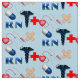 Le fait d'être diplômé d'une école de soins infirmiers ou d'autres jalons pour une infirmière mérite un cadeau. Ce motif a du texte RN, du caducée, du stéthoscope à l'écoute d'un coeur, une pilule, une seringue et des bandages.