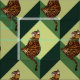 Un chat du Bengale de bande dessinée se repose sur un arrière - plan des carrés verts. Les diverses nuances donnent une illusion 3D d'un effet d'étape d'escalier. Le regard et lui Keep sembleront comme si les décalages image. Personnaliser choisie à réarranger, incliner et jouer avec les effets.