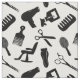 Le tissu avec un motif noir et blanc des silhouettes du coiffeur différent usine, comme des ciseaux, des peignes, des sèche-cheveux, etc.