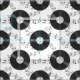 disques vinyles de musique rétro des années 80 avec notes de musique.
