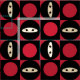 Notre visage mignon de ninja de bande dessinée dans le motif de damier avec les points rouges et les carrés noirs fait face à des directions alternées pour fonctionner bien avec presque n'importe quel projet de couture.