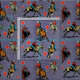 cow-girls sur des chevaux dans différentes actions courant l'arrière - plan de rotation d'impression de denim