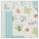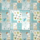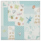 Joli design de jardin en style imitation patchwork. Aqua et ivoire sont les couleurs principales avec pois, rayures et autres motifs géométriques. Les papillons, les libellules, les coccinelles et plus accentuent ce thème fantaisiste de la faune.