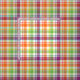 Tissu avec un motif Plaidwerx original à damiers plaid en violet clair, orange et vert citron, avec des accents bleu et blanc. Le motif répète tous les 2". Commande spéciale à grande échelle via https://plaidwerx.com/contact.htm
