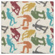 Créez des cadeaux et plus pour votre patineur préféré avec ce tissu à motifs. Caractéristiques des skateboarders en rouge foncé, orange, jaune moutarde, vert, bleu turquoise et gris charbon de bois contre un arrière - plan imitation bois.