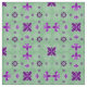 Formes complexes largement espacées sur arrière - plan bleu. La fleur de lis est la forme d'ancrage de ce design. La figure classique en trois points est équilibrée avec un arrangement de quatre étoiles pointes et de fleurs. Les formes sont principalement violettes. Le arrière - plan est un motif vert.