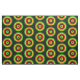 Abstract geometric tie-dye effect circles pattern in red, yellow and green on black
