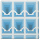 Rectangles et formes rectangulaires dans différentes nuances de bleu forment la base de cette oeuvre abstraite/géométrique originale de Richard H. Fay.