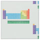 Le tissu de table périodique a une conception répétée comporter la table périodique des éléments, avec chaque groupe d'élément marqué dans des couleurs d'arc-en-ciel.
