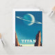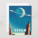 Titan & The ringed planet Saturn Vintag Style Space Art.