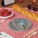 Auf dieser Papierplatte befindet sich ein getufteter Titmausvogel, der in einem Smokebush sitzt. Ideal für Picknick und Party.