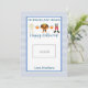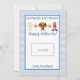 Cette carte d'Halloween pour professeur présente un arrière - plan plaid bleu et blanc avec des accents orange et dit "Pas de trucs, juste des friandises. Joyeux Halloween !" et un joli trio d'aquarelle de costumes d'halloween. Il y a aussi un espace pour laisser une carte cadeau. Personnalisez avec le nom de votre enfant.