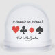 Showcase your wry bridge / duplicate bridge attitude with this snow globe featuring the four card suits along with the following rhetorical question often noted by a declarer -- inside her or his mind when playing bridge: "To Finesse Or Not To Finesse? That Is The Question". With apologies to William Shakespeare! Memorable bridge saying slow globe for any avid bridge player when trying to decide what card to play next!