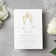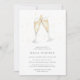 Les invitations festives et élégantes à la douche nuptiale comprennent une paire de verres de champagne clinquants en aquarelle, remplis de mousseux. Personnalisez avec vos détails de douche en lettres gris chic.