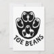 Eine schwarze Pfote mit schwarzen Bohnen als Zehen, mit dem Text "Toe Bohnen" unter der Pfote.