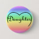 Das Wort "Tochter" wurde in die Spitze eines Herzens und Set eingearbeitet, gegen einen farbenfrohen Farbenbogen.