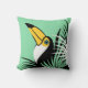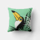 Kissen für Tierfreunde mit stilisierten Toucan Art auf aquamarinem Hintergrund