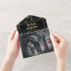 Diese gothische Hochzeitseinladung mit einer Szene aus Rosen inmitten gotischer Ruinen kann mit Ihren Informationen in eleganter Typografie personalisiert werden. Die Einladung enthält eine perforierte Antwortkarte mit dem QR-Code Ihrer Hochzeitswebsite und weiteren Details. Entworfen von Thisisnotme