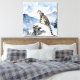 A pretty wildlife wall art with an illustration of a majestic snow leopard perched on a craggy, snow-covered peak, gazing out at a vast, frozen mountain range.