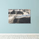 Un écran statique d'une coquille de munitions et d'une mine se trouve à moitié enseveli dans le sable avec la plage.