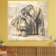 Un design d'art vintage Alice au pays des merveilles avec une illustration d'Alice au pays des merveilles, où Alice tire le rideau.