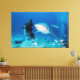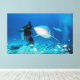 Plage d'alimentation de requins taureaux à Playa Del Carmen. Les mangeurs portent une combinaison de chainmail pour la protection.