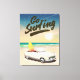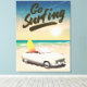 Affiche de voyage Go Surfing, dessin animé sur le surf de plage de vacances imprimé.