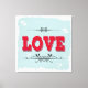Illustration d'amour vintage avec décoration florale et de coeur sur arrière - plan bleu dans cadre grunge