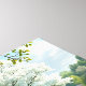 un magnifique arbre en pleine floraison, ses fleurs blanches rayonnent sur fond de verdure luxuriante et de lac tranquille. L'arbre se dresse majestueusement sur un petit promontoire, son reflet se reflète parfaitement dans l'eau calme, créant un sentiment de profondeur et de symétrie. Le paysage environnant est une tapisserie de tons verdoyants, avec des touches de rose et de jaune qui ajoutent de subtiles touches de couleur. Le ciel au-dessus est un bleu doux et brumeux, ce qui suggère une journée calme et ensoleillée. La scène dégage une atmosphère sereine et paisible, qui saisit l'essence de la douce beauté du printemps et de l'équilibre harmonieux de la nature.