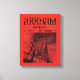 Cette affiche graphique présente Arkham Asylum, le fameux hôpital psychiatrique de l'univers Batman, sous une lumière obsédante. Toute la scène est baignée d'une sinistre teinte rouge, rehaussant l'architecture gothique et les arbres stériles qui encerclent l'asile, créant un sentiment de crainte et d'anticipation. La lune brille de façon inquiétante dans l'arrière - plan, illuminant les branches tordues qui semblent presque atteindre l'obscurité. Le lettrage gras et stylisé épelle "ARKHAM ASILUM" en haut, avec un slogan intelligent "RESTRICTED - Requires Héros d'accompagnement" qui ajoute une touche ludique mais sombre à la pièce. Cette oeuvre capture brillamment l'essence étrange d'un des monuments les plus tristement célèbres de Gotham, ce qui en fait une collection frappante pour les fans du côté sombre de la saga Batman.