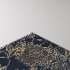 Elégante dorée délicate fleurs de jardin de printemps dessinée à la main bleu marine, avec une collection de roses d'or faux métallique, marguerites d'or jaune, doodles de fleurs d'or, feuilles d'or formes verdure art ligne, sur un bleu foncé, bleu marine-bleu arrière - plan. Unique minimaliste nature botanique art floral ligne.