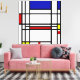 La toile enveloppée Mondrian Modern Art a une section comme Composition 10 de Pieter Piet Mondrian en rouge, bleu, jaune, noir et blanc, la plus connue du groupe de mouvement artistique De Stijl qui a utilisé trois couleurs primaires avec des lignes noires sur un arrière - plan blanc