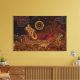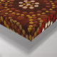 A propos de "DESERT HEAT" un dessin original de Skye Ryan-Evans (2011) © Cette image terreuse d'une scène de chasse est mise sur fond autour d'Uluru ou Ayer's Rock en Australie Centrale. C'est une carte australienne de style aborigène d'une partie du désert aussi connue en Australie, comme l'Outback. Les différents points colorés représentent des éléments naturels comme les montagnes, les cours d'eau, les lits de criques séchés, les sources de nourriture comme Kangaroo et Goanna, Gecko et Snake etc. De nombreux cercles représentent de petits plantes du désert qui fleurissent pendant la saison des pluies et les formes florales du ciel sont des étoiles en spirale brûlant dans les cieux et jetant leur lumière pour les animaux nocturnes qui sillonnent le désert en cool de soirée. La pièce centrale représente le soleil implacable du désert et la chaleur qu'il génère pour apporter vie et mort au cycle du désert. Certaines des formes animales du ciel dépeignent les esprits animaux auxquels le chasseur aborigène rend grâce lorsqu'il prend un animal pour sa subsistance. Le serpent est lié à la Création dans les mythologies du rêve australien. Dans cette représentation terrestre, le serpent rampe à travers des herbes désertiques sèches et le second, vu dans le ciel, est représentatif de l'esprit du serpent. 25 % des pourcentages gagnés grâce à cet imprimé d'art biologique sont donnés au grand Habitat pour l'humanité en Amérique du Nord.