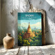 Bagan, Myanmar with golden temples rising above lush green landscape in a bold travel poster layout. This canvas print adds a warm focal point to an office, living room, entryway, or travel wall. Gift-ready for culture lovers, Southeast Asia travelers, history fans. Coordinates with the Travel Poster Canvas collection for a cohesive set.