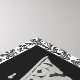 © Susan Eby Glass / Pomme sauvage. Cette baignoire noire et blanche est bordée de motifs floraux qui sont également en noir et blanc.
