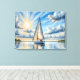 Un voilier navigue gracieusement à travers un plan d'eau tranquille, reflétant le ciel animé et les nuages moelleux