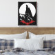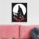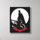 Batman standing in silhouette by the Batcycle with Bat Logo.