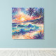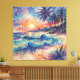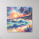 The beach with a glowing sun in the background in a "scribbles" art style. This unique artwork uses energetic lines and vibrant washes of color to create a dynamic impression of a tropical beach. Palm trees sway, waves crash, and the sun sets in a burst of abstract expression. The loose, spontaneous style gives the piece a fresh and lively feel. An ideal choice for adding a touch of artistic flair and coastal charm to any room. Loose, dynamic brushwork and a rich palette of blues, greens, oranges, and purples evoke the feeling of a warm breeze and the rhythmic crash of waves. The scene is capturing the fleeting beauty of a sunset over the ocean. A perfect piece for those who love the coast and or expressive art. This artwork can be customized, printed, and or downloaded.