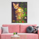 Toile illustrée d'un beau chat abyssin dans un jardin du soir, avec fleurs de nuit