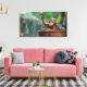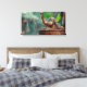 Baby Orangutan se trouve dans un petit bassin naturel en bois rempli d'eau, entouré de mousse verte et luxuriante sous la pluie