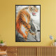 Un dessin chinois d'un tigre du Bengale sur le flanc d'une montagne enneigée et le tigre orange et noir raye ses dents pointant vers vous et ses yeux grands ouverts sur cette toile enveloppée