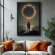 A powerful scene of cosmic contemplation. Beneath a blazing eclipse, a lone figure stands by the sea, evoking reflection on the universe and the unknown. Perfect for spaces that embrace soulful art, visual impact, and depth.