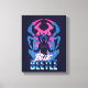 Découvrez cette image de style rétrovague du bousier bleu avec Carapax qui se profile derrière lui dans la ville !