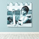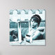 rendu numérique 3D d'une belle jeune femme vintage assise dans une voiture sur un arrière - plan d'une ville d'été, couleur bleue