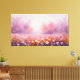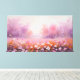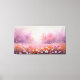 Cette peinture paysagère abstraite capture la beauté éphémère de la nature. Les teintes douces du rose, du violet et de l'orange se marient harmonieusement, évoquant un sentiment de tranquillité. Au premier plan, un champ de fleurs très vivant, dont les couleurs contrastent avec le ciel tamisé. L'impression générale est d'un équilibre délicat et d'une beauté éphémère.