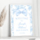 Herzlich willkommen in Ihrer niedlichen Babydusche mit diesem charmanten, französischen Begrüßungsschild. Mit einer zauberhaften blauen Bogen-Krawatte auf dem Bohmarsch und einem floralen Toilmuster im Hintergrund schafft es eine einladende Atmosphäre für Ihre Feier. Ideal, um den Ton für Ihre Veranstaltung festzulegen und die Gäste mit Stil und Charme zu begrüßen. INSTANT DOWNLAD verfügbar.