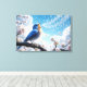 Un bleuet chante joyeusement sur une branche de fleurs de cerisiers avec des notes musicales tourbillonnant dans le ciel