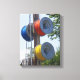 Des bobines de fil colorées bleues, orange et jaunes sur un poteau téléphonique. Scène de bord de route dans le Maryland.